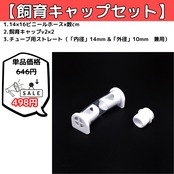 仕切り付きのキャップに蜜や水、肉エサを入れて与えます。