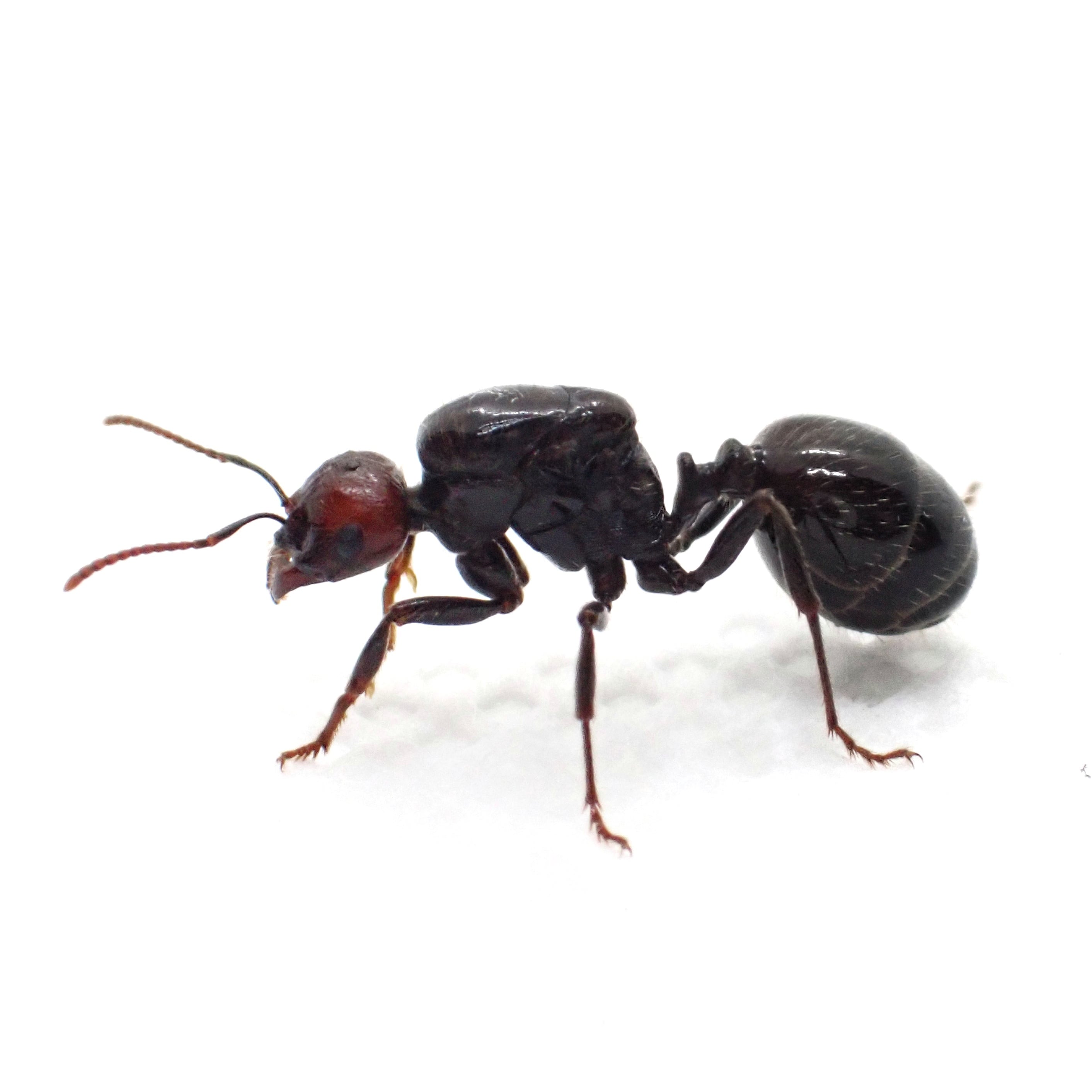 ※バルバルスクロナガアリは、全身黒(フルブラック)から全身が暗い赤褐色に近い体色までカラーバリエーションがあります。(画像参照)