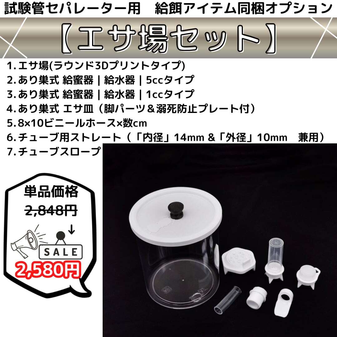 下記の「試験管セパレーター」で発送致しますので、餌場をご用意いただければそのまま飼育可能です。