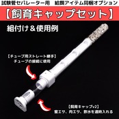 仕切り付きのキャップに蜜や水、肉エサを入れて与えます。
